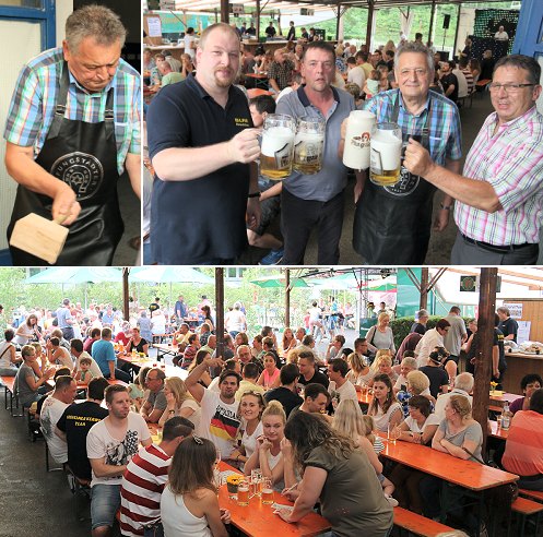 Den Fassanstich zur Eröffnung am Samstagabend nahm der Erste Stadtrat Karlheinz Happes vor, moralisch unterstützt von Bierkutscher Sven Endreß, Volker Schaefer von der Pfungstädter Brauerei und Uhrig. Danach konnten die Besucher im Biergarten die nette Atmosphäre, das DLRG-Stammessen vom Buchenholzgrill und die Gastfreundschaft der Helfer genießen.