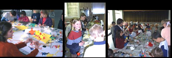 Osterwerkstatt in der katholischen Unterkirche Fotos Friedrich(lf) Es ist mittlerweile schon Tradition, daß am Karsamstag in der Unterkirche von St. Josef die Osterwerkstatt der katholischen Jugend stattfindet. Von Mal zu Mal wird der Andrang größer. Über 50 Kinder aus Eberbach und Umgebung, etwa im Alter zwischen 3 und 14 Jahren, waren von 10 bis 12 Uhr schwer in Aktion. Betreut und angeleitet von Mitgliedern des Jugendkreises der beiden katholischen Kirchengemeinden konnten die großen und Kleinen Künstler z.B. ausgeblasene Eier bunt bemalen, Osterhasen aus Holz aussägen, Osternester oder Moosgummi-Stecker basteln. Auch in der Küche war man mit viel Kreativität aktiv. Stolz wurden mit teigverschmierten Fingern Osterhasen geformt. Zwischendurch wurde auch ein Hasenspiel und „Eierdieb“ gespielt. Jeder konnte ganz nach seinen Wünschen die einzelnen Stationen besuchen. Kein Wunder, daß die zwei Stunden wie im Flug vergingen. Nicht nur die Kinder, sondern auch die Veranstalter freuen sich bereits auf die nächstjährige Osterbastelei.