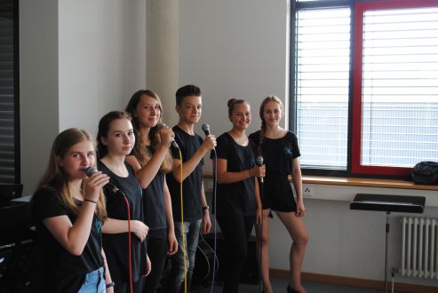 Aus den „Vier Jahreszeiten“ erklang ein instrumental-sommerlicher „Frühling“, der den letzten Teil des Abends eröffnete. Es folgte ein anrührendes „I’ll be there“. Im Anschluss stimmten die SchülerInnen sich und das Publikum mit einem punkig rockigen „Holiday“ von Greenday bereits auf die nahenden Sommerferien ein.