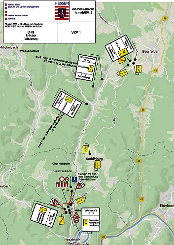 Die Vollsperrung beginnt am 15. August und wird etwa vier Wochen andauern. Die ausgeschilderte Umleitung führt ab dem Brombacher Tal (Einmündung K 35) über die Landesstraße 3410 über Rothenberg nach Beerfelden und umgekehrt.