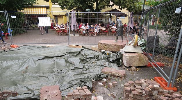 Die meisten Gäste auf dem Lindenplatz bedauerten das fehlende Geplätscher, und die Eberbacher wunderten sich teilweise über die lange Sanierungszeit. Es gab aber auch humorvolle Besucher, die dem Bauzaun schmunzelnd Großstadtflair bescheinigten, denn jede wichtige Stadt brauche heute nun mal eine Langzeit-Großbaustelle.