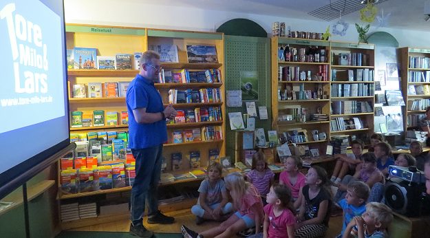 Fester Bestandteil beim Ferienprogramm in Eberbach ist eine Lesung mit dem Kinderbuchautor Marco Banholzer. Gestern war er wieder auf Einladung von Geschäftsführerin Carola Erb zu Gast in ihrem Buchhaus in der Bahnhofstraße. Mit im Gepäck hatte Banholzer sein druckfrisches Buch "Das Rätsel auf Burg Eberbach", mit dem neuesten Abenteuer von Tore, Milo und Lars. Bei einer Veranstaltung auf der Burg bricht plötzlich ein Feuer aus, das Fest muss abgebrochen werden. Für die Jungs bedeutet dieses Ereignis natürlich wieder Arbeit und Aufregung.