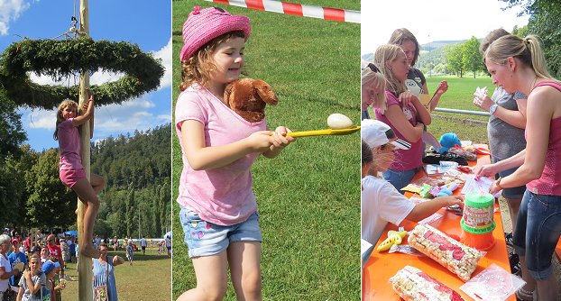 Schon lange vor dem offiziellen Beginn des Festes um 14.30 Uhr standen die Jungen und Mädchen an den Spielstationen und warteten auf die offizielle Eröffnung durch Bürgermeister Peter Reichert. Der eröffnete das Fest dann auch ein paar Minuten früher, wofür ihm bei der sommerlichen Temperatur viele Kinder und vor allem Begleitpersonen dankbar waren.