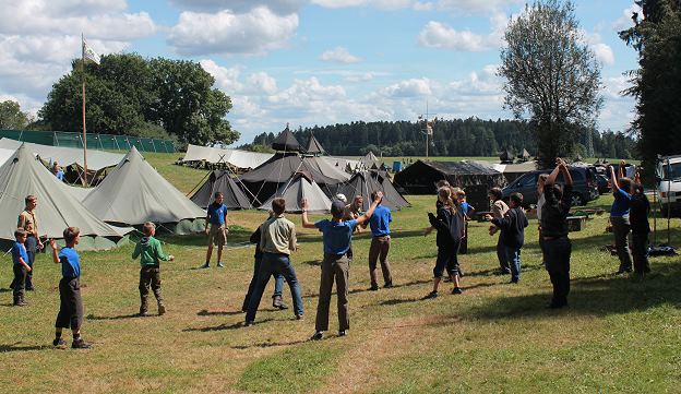 Sie trafen sich mit Gruppen aus dem gesamten Pfadfinderbund Süd, so dass auf der Wiese am Waldrand eine kleine Zeltstadt entstanden war. Spiel, Abenteuer und das Erleben von Gemeinschaft standen im Mittelpunkt.