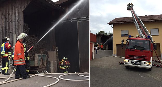 Die Schönbrunner Wehr rückte mit drei Fahrzeugen an, einem Katastrophenschutzfahrzeug und zwei Tragkraftspritzenfahrzeugen. Außerdem wurde die Drehleiter aus Aglasterhausen angefordert.