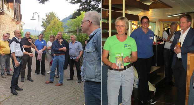 Das gestrige Treffen sei nach einem Austausch mit Martina Kappes zustande gekommen, so Matthias-Gund. Nach einem kleinen Stadtrundgang mit Stadtführer Gunter Sokollek (Bild links) nahm Kappes die Gäste, unter ihnen auch Neckarsteinachs Bürgermeister Herold Pfeifer, mit auf ihr Ausflugsschiff. Während einer Schifffahrt auf dem Neckar stellte Kappes ihr Unternehmen mitsamt ihren Angeboten vor. Bürgermeister Peter Reichert wies auf die Eberbacher Firmen hin, die weltweit bekannt seien, wie etwa die GELITA AG oder - gerade nach der Olympiade in Rio - die Bootswerft Empacher. Einen wachsenden Markt sehe er im Tagestourismus, weshalb er es als wichtig ansehe, dass man sich in diesem Bereich mit den Nachbarregionen ergänze. Die Arbeit der Eberbacher Werbegemeinschaft (EWG) stellte Vorstandsmitglied Sven Bauer vor. Eberbachs kulinarische Vorzüge sprachen an diesem Tag ganz für sich selbst, denn die Gäste durften Fingerfood vom Hotel "Altes Badhaus" und die über Eberbachs Grenzen hinaus bekannte "Viktoria-Torte" vom gleichnamigen Café verkosten. Einen Einblick in den Naturpark Neckartal-Odenwald mit dem Naturparkzentrum im Thalheimschen Haus gewährte Geschäftsführerin Cordula Samuleit (Bild rechts) und warb gleichzeitig auch für die Naturparkmärkte, die in der Region stattfinden.