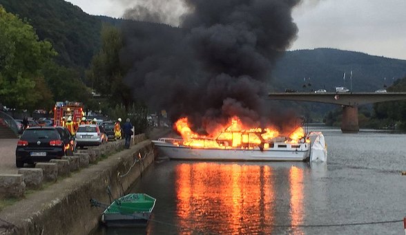 Die Freiwillige Feuerwehr Eberbach musste gegen Abend zu einem Brandeinsatz am Neckarlauer ausrücken. Eine Motoryacht stand dort in Vollbrand.