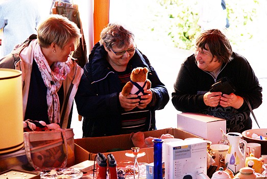 Gäste wollten Fest in Schwarzach nicht enden lassen Kleine Freuden, große Freuden: Die erlebten Besucher beim Erntedank- und Herbstfest auch am Flohmarktstand des Mosbacher Vereins "Partnerschaft in einer Welt" zur Unterstützung des „Child Guidance Center“ in Indien. (Foto: Dirk Adler-Witkowski)(bro) (mw) Für ein richtig gutes Fest bot es alles - und davon in diesem Jahr nicht nur mehr, sondern auch viel länger. Hatte das traditionelle Erntedank- und Herbstfest auf dem Schwarzacher Hof der Johannes-Diakonie zwar offiziell geendet, klangen damit nicht die Freude, der Elan und das Interesse der Besucher ab. Die nutzten das vielfältige Programm bis in den Abend hinein. Auf dem standen in diesem Jahr auch der feierliche 35. Gründungstag der Schwarzacher Werkstätten und der 40. Jahrestag des Therapeutischen Reitens auf dem Schwarzacher Hof.