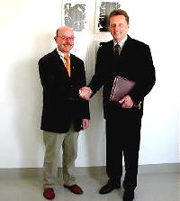 Leiter der Kriminalpolizeiaußenstelle Eberbach 40 Jahre im Dienst Foto:Polizei(jc) Aus den Händen von Kriminaldirektor Bernd Fuchs, Leiter der Polizeidirektion Heidelberg, konnte Anfang April 2002 der Leiter der Kriminalpolizeiaußenstelle Eberbach, Erster Kriminalhauptkommissar Rüdiger Freund (58), die Urkunde zum 40-jährigen Dienstjubiläum entgegen nehmen.