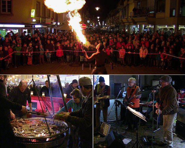 Feuerkünstler “Jeremy” ließ mit zwei Shows vor der evangelischen Kirche und in der Bahnhofstraße West die Augen der kleinen und großen Zuschauer funkeln, und vielerorts luden Bewirtungs- und Getränkestände zum Verweilen und Stärken ein.