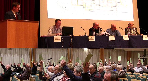 Stiftung-Altersheim-Mitglieder stimmen zinsgünstigen Darlehen zu (Fotos: Hubert Richter)(hr) In der Eberbacher Stadthalle genehmigten heute die Mitglieder des Vereins Stiftung Altersheim Eberbach. e.V. den Finanzierungsplan für die anstehende Sanierung des ehemaligen Seniorenheims Dr.-Schmeißer-Stift in der Luisenstraße.