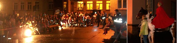 St. Martin kam hoch zu Ross und teilte seinen Mantel (Fotos: Melanie Hopp)(mho) In Eberbach fand gestern Abend, am 11. November, wieder der große Laternenumzug statt, einmal mehr bestens organisiert vom Bürger- und Heimatverein (BHV).
