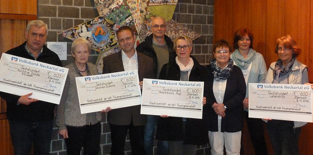 Beim letzten Frühlingsbasar wurde ein Reinerlös von rund 3.500 Euro erwirtschaftet, der an verschiedene gemeinnützige Einrichtungen gespendet wurde (Lebenshilfe, Arbeitskreis Asyl, Johannes-Diakonie, Karitative Dienste St. Elisabeth, Frauen in Not, Celine Rosenits, Patenschaft für eine Nonne in Ghana zur Ausbildung zur Hebamme und Krankenschwester). Unser Foto zeigt die symbolische Spendenübergabe an die anwesenden Vertreter einiger Einrichtungen.