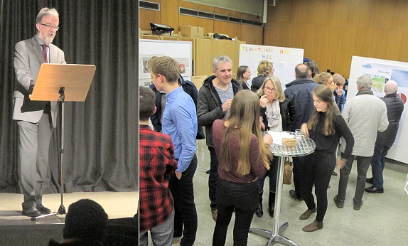 Der Abend fand eine sehr gute Resonanz. Die Aula war mit 120 Personen voll besetzt. Auch viele Eltern der Flüchtlingskinder besuchten den Abend. Im Anschluss an den 90-minütigen Vortrag standen die Schülerinnen und Schüler vor den erarbeiteten Schautafeln den Besuchern Rede und Antwort.