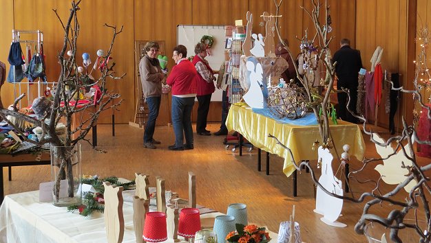 Katholische Frauengemeinschaft war wieder für die gute Sache kreativ (Foto: Claudia Richter)(cr) Die Frauen der Kreativwerkstatt der katholischen Frauengemeinschaft in Eberbach luden gestern zu ihrem Weihnachtsverkauf ein. Dank vieler Gäste waren sowohl die Produkte als auch der Kuchen am Ende der Veranstaltung fast komplett verkauft.