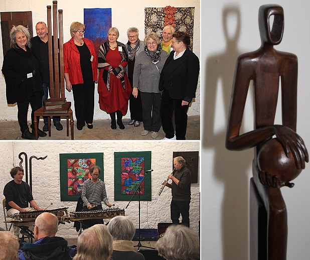 Musikalisch begleiteten Milan und Peter Löffler auf dem Ballaphon und Stefan Müller auf dem Saxophon (Unser Bild unten) die Artvent-Eröffnung in der Galerie Artgerecht.