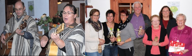 Nach der Begrüßung durch die Vorsitzende Jutta Ihrig und einem guten Essen sang man dieses Mal zuerst Weihnachtslieder. Es gab es sogar „Stille Nacht“ als Solo auf Slowenisch und peruanische Weisen, gesungen von dem Gitarrenduo Kienast.