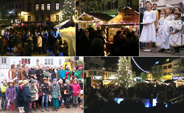 Bürgermeister Peter Reichert eröffnete den Markt am Freitagabend zu Bläserklängen. Am Samstagvormittag konnte die Musical- und Chorgruppe der Steige-Grundschule unter der Leitung der beiden Lehrerinnen Bärbel Weber und Brigitte Gumb mit einer farbenfrohen und musikalischen Darbietung begeistern. Unter dem Titel "Der zerstreute Weihnachtsmann" wurde den Zuschauern gezeigt, mit welchem großen Druck ein Weihnachtsmann alljährlich durch die wachsenden Erwartungen der Kinder und Erwachsenen zu kämpfen hat. Die Weihnachtswichtel hielten nach ihm Ausschau und der Mond entdeckt ihn - in Mexico. Aber wie soll es in Eberbach Weihnachten werden, wenn der Weihnachtsmann nicht da ist? Die Reise durch die fernen Länder begann, und mithilfe der Weihnachtswichtel schaffte es der Weihnachtsmann mit seinen Rentieren auch nach Eberbach. Von “Feliz Navidad” über “Petit Papa Nöel”, “We wish you a merry christmas” bis zu einer rockigen Version von “Morgen Kinder wird´s was geben” waren alle bekannten Klänge der Weihnachtszeit perfekt einstudiert.
