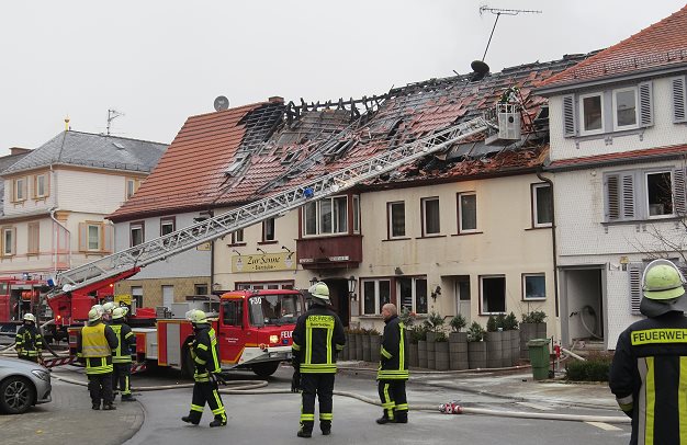Mehrfamilienhaus ist nach Feuer unbewohnbar (Foto: Hubert Richter)(hr) Bei einem Wohnhausbrand in der Innenstadt von Beerfelden ist in der Nacht ein Mensch ums Leben gekommen.