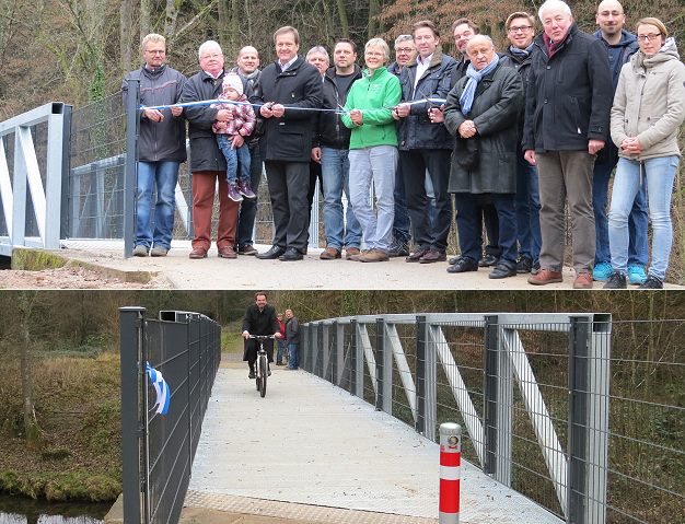 Und wie es sich für bedeutende Bauten gehört, wurde gestern auch die Fußgänger- und Fahrradbrücke, die an einem viel genutzten Wanderweg liegt, mit dem Durchtrennen des Bandes feierlich der Allgemeinheit übergeben. Reichert wünscht sich viele Walker, Wanderer und Fahrradfahrer, die diese Stahlbrücke nutzen.