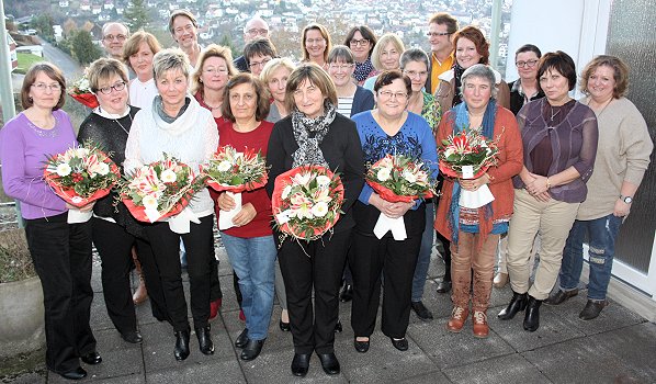 Langjährige Betriebszugehörigkeit lässt auf Zufriedenheit schließen Feierten Jubiläum und Abschied über den Dächern von Eberbach (v. l.): Nina Hohmann (Ruhestand), Helga Heckmann (Jubilarin), Martin Hildenbrand (Klinikleiter), Birgit Tuna (Jubilarin), Susanne Schultheß (Ruhestand), Dr. Bernhard Nitsche (Ärztlicher Direktor), Marion Helm (Jubilarin), Brunhilde Weber (Jubilarin), Ralf Geiger (Stellv. Klinikleiter), Selma Sucu (Ruhestand), Zdravka Vranjes (Ruhestand), Birgit Straßburger (Jubilarin), Ellen Behlau (Jubilarin), Gertrud Fuchs (Jubilarin), Brigitte Perez Romero (Ruhestand), Petra Polzer (Jubilarin), Alice Draxler (Jubilarin), Jeannette Schmidt (Jubilarin), Michael Spiegelberg (Pflegedienstleiter), Andrea Hügelschäfer (Jubilarin), Monika Ott (Jubilarin), Marlene Vogel (Betriebsrätin), Angelika Hudl (Jubilarin), Brigitte Kammerer (Betriebsrätin). (Foto: GRN)(bro) (pm/stm) Die Kuchentafel war üppig gedeckt, als sich Ende November 13 Jubilarinnen und fünf Neu-Pensionärinnen im Dachgarten der GRN-Klinik Eberbach versammelten, um gemeinsam ihr Dienstjubiläum zu feiern beziehungsweise sich in den Ruhestand zu verabschieden.