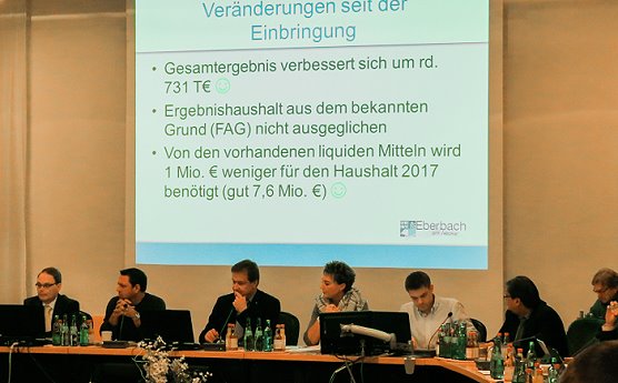 Zahlenwerke einstimmig und rechtzeitig vor dem Jahreswechsel verabschiedet  (Foto: Hubert Richter)(hr) In seiner letzten öffentlichen Sitzung in 2016 beschloss der Eberbacher Gemeinderat heute Abend rechtzeitig und einstimmig den städtischen Haushaltsplan für das kommende Jahr mitsamt der Finanzplanung bis 2020, ebenso den Wirtschaftsplan 2017 für die Stadtwerke.