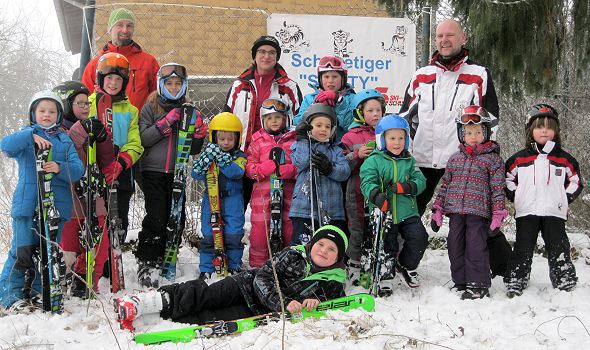 Ein gelungener Auftakt des Skitty-Teams (Foto: privat)(bro) (sch) Überwältigt vom Zuspruch waren am Sonntag, 8. Januar, Silja, Jens und Olav Schilla vom Skitty-Team der Skizunft Katzenbuckel Eberbach. Zum ersten Kinderskikurs hatten die Alpinskilehrer an den höchsten Odenwaldgipfel geladen, und zwölf Kinder ab vier Jahren waren dem Aufruf gefolgt.