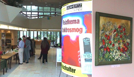 Geobiologen diskutieren Mobilfunk-Gefahren (Fotos:Richter)(hr) Seit gestern abend bis Sonntag findet in der Stadthalle Eberbach die 40.Frühjahrstagung des Forschungskreises für Geobiologie Dr.Hartmann statt. Der über 1.500 Mitglieder starke Verein befasst sich diesmal mit dem Thema "Mobilfunk und Gesundheit". Die Tagungsgäste und Referenten kommen aus dem gesamten Bundesgebiet und dem benachbarten Ausland. Vorträge behandeln u.a. die Frage gesundheitlicher Auswirkungen von Mobilfunk und Elektrosmog, die gerade auch durch Standortdiskussionen für Mobilfunkantennen, z.B. auf Kirchtürmen, aktuell ist. Das Tagungsprogramm ist im Internet abrufbar (s.u.).