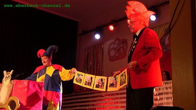 Dieter Verfürth und Tina Kämmler ließen als “Owl Thunder” in ihrer Musikrevue unter anderem den Rockenauer Fahnenstreit wieder aufleben. Barbara Krawczyk behandelte als Krankenschwester in der Bütt das Fastnachtsfieber, nachdem sie Eulenspiegel-Präsident Dieter Redder gekonnt aus einer Ohnmacht geholt hatte. Das neue Trio “Singeulen” (Dieter Redder, Roland Schneider und Stefanie Schölch) stimmte eine zur Melodie des Giesinger-Hits "80 Millionen" gedichtete Hymne auf den Club an, und Sandra Dietz erzählte zusammen mit Carola Zimmermann von einer pannenreichen Weltreise.