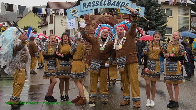 (hr) Kräftig von oben eingeweicht wurden die Teilnehmer und Zuschauer beim traditionellen Fastnachtsumzug heute Nachmittag in Eberbach. Die Narrenschar trotzte dem Dauerregen und ließ sich die Feierlaune nicht verderben.