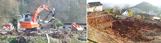 Ehemalige Schönheitsfarm wurde Opfer der Abrissbirne Abrissarbeiten und Baugrube für Wohnprojekt in der Zähringer Straße (Fotos:Privat)(jc) Im Wohngebiet Burghälde wurden in den letzten Tagen die Abrissarbeiten der ehemaligen Schönheitsfarm in der Zähringer Straße beendet. Das nach erheblichem Brandschaden seit einigen Jahren leerstehende Gebäude wurde jetzt komplett abgetragen und das Grundstück freigelegt. Auf dem Gelände in sonniger Stadtrandlage läuft bereits die Realisierung eines neuen Wohnprojektes. Die Erdarbeiten sind derzeit in vollem Gange. Auf dem Areal sollen nun Eigentumswohnungen mit unterschiedlichen Wohnflächen entstehen. Realisiert wird das Wohnprojekt durch die Fa. iwb Bauträger GmbH aus Walldürn-Rippberg. Mit dem Vertrieb ist die Eberbacher Firma Rechner Immobilien beauftragt.
