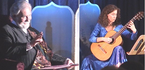 Ein Abend der leisen Töne (Fotos:Richter)(hr) Nur rund 70 Zuhörer wollten sich gestern abend von Elmar Gunsch ins Reich der Phantasie entführen lassen. Das Kulturamt hatte deshalb kurzfristig die Veranstaltung vom Großen Saal der Stadthalle in den Kleinen Saal verlegt. Die lockere Bestuhlung mit Vierer-Tischen schaffte ein gemütliches Ambiente für einen Abend der leisen Töne. Elmar Gunsch, Journalist und bekannter Fernseh-Entertainer, wollte mit seinem Programm aus Geschichten und Märchen für Erwachsene vor allem die Phantasie seines Publikums ansprechen. Die Phantasie sei ein Grundbestandteil der menschlichen Intelligenz, und ohne sie hätte der Mensch nie die Geheimnisse der Welt ergründen können, sagte der gebürtige Österreicher mit der sonoren Stimme gleich zu Beginn. Aus aller Welt stammten die Geschichten und Parabeln, die Elmar Gunsch mit seinem großen sprachlichen Ausdrucksvermögen vortrug. Die junge Gitarristin Barbara Hennerfeind begleitete gekonnt die gesprochenen Worte. Virtuos nahm sie die Stimmungen der Geschichten auf und transportierte sie musikalisch weiter oder setzte Zäsuren zwischen den einzelnen Stationen der phantastischen Reise.