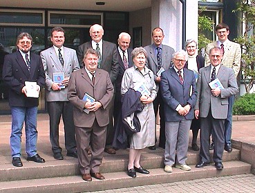 Bewährter zeitgeschichtlicher Mix im Jubiläums-Geschichtsblatt Schriftleiter Dr.Rüdiger Lenz und Bürgermeister Bernhard Martin mit Autoren des Geschichtsblatts 2002: Anton Veith, Joachim Viebig, Hans Klinge, Christa Haas, Bruno Schmitt, Karlheinz Mai, Margareta Steinmetz, Günther Stanke und Lutz Ritter (v.l.). (Foto:Richter)(hr) Im 101. Jahr nach seiner Gründung präsentiert sich das Eberbacher Geschichtsblatt erneut als umfangreiches Werk. Schriftleiter Dr. Rüdiger Lenz musste sogar zwei Artikel abweisen und auf's nächste Jahr verschieben, um den Rahmen des gut 300 Seiten starken Buchs nicht zu sprengen. Im Jubiläumsjahr der Stadt Eberbach ziert das alte Königssiegel Heinrichs [VII.] gemeinsam mit der aktuellen Jahresmünze das Titelblatt. Auf Verlauf und Strukturen der 775-jährigen Stadtgeschichte geht Dr. Rüdiger Lenz in seinem Aufsatz ein. In einem weiteren historischen Beitrag betrachtet Karlheinz Mai die Belehnung König Heinrichs [VII.] 1227 mit der Burg Eberbach. Umfangreich berichtet Hans Klinge über das Hochgericht der Eberbacher Zent und dokumentiert historische Urteile des Malefiz-Gerichts. Peter Zechel beschreibt den Industriestandort Eberbach. Wirtschaftsgeschichtlich auch ein Beitrag von Bruno Schmitt über die Möbelfabrik Georg Neuer in Eberbach. Margareta Steinmetz liefert einen Nachtrag zum Geschichtsblatt 2000 mit einer weiteren Auflistung von Eberbacher Kriegstoten der Jahre 1939 bis 1945: "Gegen das Vergessen". Geschichtliches über die Forstknechte in der Kurpfalz und die Forstmeister in Eberbach steuert Joachim Viebig bei, und Günther Stanke schildert die Geschichte der Katholischen Kantorei, die in diesem Jahr 125 Jahre alt wird. Den "Eberbacher Spinnzirkel" stellt Christa Haas vor, und Lutz Ritter beleuchtet Entstehung und Entwicklung der Casino-Gesellschaft Eberbach. Ein Beitrag von Markus M.Wieland beschäftigt sich mit den Anfängen der Gewerkschaftsbewegung in Eberbach.