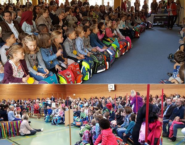 128 neue ABC-Schützen (Fotos: Büsra Isik/privat)(bi) An beiden Eberbacher Grundschulen wurde gestern die Einschulung der Erstklässler gefeiert.