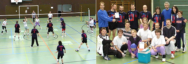 TVE- Montagsgruppe schlägt den TV Stockheim im Finale Links:Endspielszene; rechts: Die Endspielteilnehmer vom TV Stockheim (vorne) und des TV Eberbach (Fotos:Claussen)(jc) Im gestern ausgetragenen Volleyball-Freizeitturnier des TV Eberbach konnte sich eine der Heimmannschaften durchsetzen. Die „Montagsgruppe“ des TVE ging nach einem spannenden Endspiel gegen den TV Stockheim als Sieger hervor. Auf dem dritten Platz landeten die „Hobbydoodler“ des VC Erbach vor dem TV Bammental, dem Team „Friday Schmetterhand“ des TVE und „Freixenet“ vom TV Waibstadt. Insgesamt nahmen 15 Mannschaften aus Eberbach und der Region an dem Turnier, das schon viele Jahre stattfindet, teil.