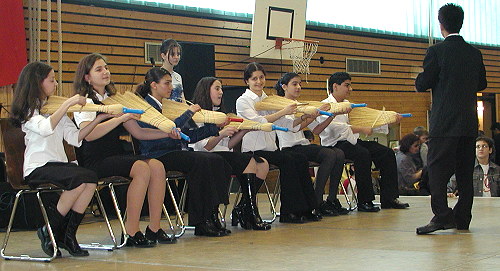 Türkisches Kinderfest in der Mehrzweckhalle gefeiert Gruppe der Realschule Eberbach bei der Vorführung einer Musikkomödie. (Foto:Claussen)(jc) Am gestrigen türkischen Nationalfeiertag wurde in der Mehrzweckhalle wieder das türkische Kinderfest gefeiert. Am 23. April feiern die Türken traditionell die Gründung ihres Staates durch Mustafa Kemal Atatürk. Bevor zu Beginn der Veranstaltung die türkische Nationalhymne erklang, wurde in einer Gedenkminute der Opfer von Erfurt gedacht. Bürgermeisterstellvertreter Hermann Bussemer überbrachte die Grüße der Stadt und des Bürgermeisters. In einem bunten Programm aus Tanz, Theater, Musik und vorgetragenen Gedichten zeigten Kinder aller Altersgruppen ihr Können. Wettspiele, umfangreiche Verköstigung mit landestypischen Spezialitäten und eine Tombola rundeten das Fest in der vollbesetzten Halle ab.