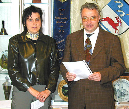 (tb) In der gestrigen Sitzung des Waldbrunner Gemeinderates wurde eine Gemeinderätin in ihr Amt eingeführt. Eingangs des Sitzung galt es zunächst, etwaige Hinderungsgründe für die in den Gemeinderat nachrückende Beate Schwellinger festzustellen. Gemäß den Ergebnissen bei der letzten Kommunalwahl vom 24.Oktober 1999 sollte sie für den aus dem Gemeinderat ausgeschiedenen Guido Schäfer als nächste Ersatzbewerberin auf der Liste der SPD für den Wohnbezirk Strümpfelbrunn nachrücken. Da keine Hinderungsgründe angemeldet wurden, wurde Beate Schwellinger danach durch Bürgermeister Klaus Schölch in ihr Ehrenamt eingeführt und verpflichtet.