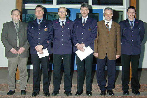 Gerald Veith weitere fünf Jahre Gesamtkommandant von Waldbrunn Waldbrunner Kommandanten wurde vom Gemeinderat bestätigt. Unser Foto zeigt Weisbachs Ortsvorsteher Reinhard Kessler (l.) mit seinem Kommandanten Andreas Schmitt (3.v.r.) stellv. Kommandant Otmar Ihrig (3.v.l.), Gesamtkommandant Gerald Veith (2.v.l.), Bürgermeister Klaus Schölch (2.v.r.) und stellv. Gesamtkommandant Harry Krieger. (Foto:Baumgartner)(tb) Als Nachfolger für Reiner Böckenhaupt wurde in der Gemeinderatssitzung vom 17. April 1997 der Wahl von Gerald Veith zum Gesamtkommandanten der Freiwilligen Feuerwehr Waldbrunn auf die Dauer von fünf Jahren zugestimmt. Vor kurzem wurde er bei der Jahreshauptversammlung der Gesamtwehr mit überaus großer Mehrheit in seinem Amt bestätigt. Die Zustimmung des Gemeinderates bei der Sitzung am vergangenen Montag hierzu war dann reine Formsache, ebenso wie die Zustimmung für Reinhard Hagendorn als Abteilungskommandant der Freiwilligen Feuerwehr des Ortsteils Mülben.