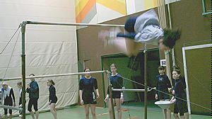 Guter Einstieg der Jugendturnerinnen des TVE in die Gauligarunde (Foto:privat)(jc) (sg) Am vergangenen Freitag begann die diesjährige Gauligarunde der Kürturnerinnen des Turngau (Kreis) Heidelberg. Gleich der erste Wettkampf fand in der Ittertalsporthalle in Eberbach statt. Durch diesen Heimvorteil erhofften die Mädchen der 1. Mannschaft des TV Eberbach einen Sieg gegen Nussloch und Walldorf zu erturnen. Doch gleich am ersten Gerät, dem Pferdsprung, bei dem sich die Turnerinnen große Chancen ausgerechnet hatten, wurden sie durch die unzureichenden Wertungen der Kampfrichter enttäuscht. Am Barren jedoch kehrte ihr Kampfgeist wieder zurück und sie zeigten was in ihnen steckte. Nach dem 2. Gerät und damit zur Halbzeit lagen die TVElerinnen gut im Rennen. Nun folgte das schwierigste Gerät, der Schwebebalken, auch bekannt als Zittergerät. An ihm scheiterten die im Training und beim Einturnen gut vorbereiteten Übungen. Das Pech verteilte sich jedoch auf alle drei Mannschaften, sodass sich keine besonders absetzten konnte. Die Entscheidung sollte also am Boden, fallen. Hier wurde noch einmal hart gekämpft. Die selbstzusammengestellten Übungen werden von selbstgewählten Instrumentalstücken begleitet. Am Ende wurde es für alle Teilnehmerinnen spannend. Doch leider reichte es für die Turnerinnen der Fördergruppe nicht zu gewinnen. Doch einen guten 2. Platz lässt uns auf die kommenden Wettkämpfe hoffen. Und vielleicht, sofern auch die Kampfrichter mal ihre Hausaufgaben machen, reicht es am Ende zu einem der vorderen Plätze.