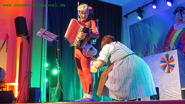 Buntes Fastnachtsprogramm in der Rockenauer Festhalle Rettungstaucher Johann "Wastl" Bachl mit Assistentin Sandra Dietz (Foto: Hubert Richter)Mehr Bilder (Klicken zum Vergrößern):