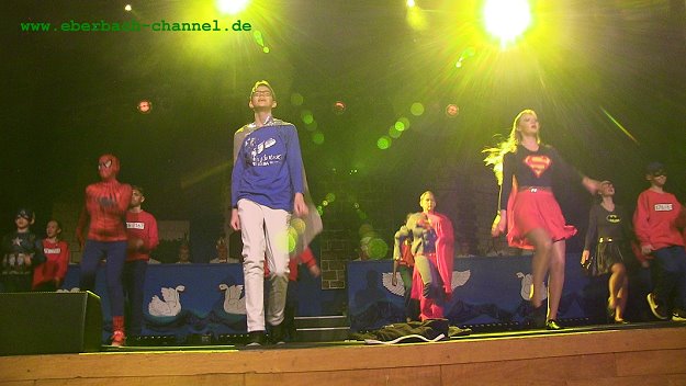 Schmissiger Auftakt der zweiten Hälfte des Sitzungsprogramms war der Marschtanz der Prinzengarde. Weitere tänzerische Highlights waren die effektvollen choreografischen Auftritte der “Nesthocker” (“Cowboy und Indianer”) und der “Elwetritsche” (Tanz der Vampire). Viel umjubelt war auch der Auftritt des KGK-Tanzmariechens Anna-Lena Kappes. Zwischen den Tänzen gab es mit Jana und Udo Geilsdörfer als weiße Fee aus Schönbrunn und schwarze Fee aus Eberbach Nachdenkliches und Heiteres über die Kommunalpolitik, und die aberwitzigen “Szenen einer Ehe” von Heiner und Gretel (Jens Müller und Silke Auer) ernteten einmal mehr Lachsalven im Publikum. Ins Finale des rund fünfstündigen Spektakels ging es mit dem närrischen Musikmedley der KGK-Boygroup “Stadtschwalben”, die aus dem 2017er Megahit "Despacito" ein Eberbacher "Was passiert do?" machten.