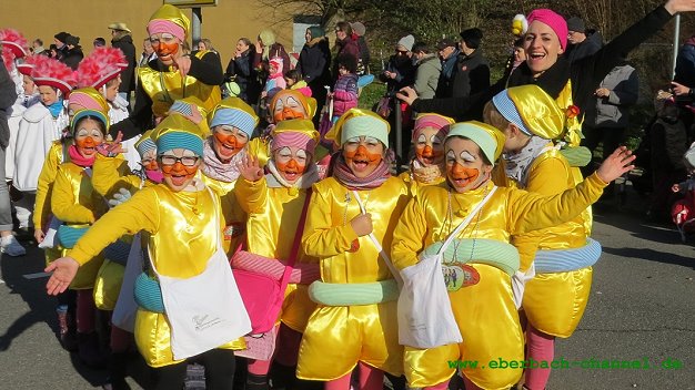 Mit dabei waren fast alle Aktiven der KGK auf Wagen oder als Fußgruppen, außerdem starke Abordnungen der anderen Eberbacher Karnevalgesellschaften Club Eulenspiegel und KG Urmel sowie die Karnevalfreunde Haidebow mit ihrem erneut sehr aufwändigen Motivwagen, die Fastnachtsfreunde Eberbach und die “Wilden aus dem Ittertal”, ebenso weitere Gruppen, Initiativen und Vereine aus der Stadt und ihren Ortsteilen.