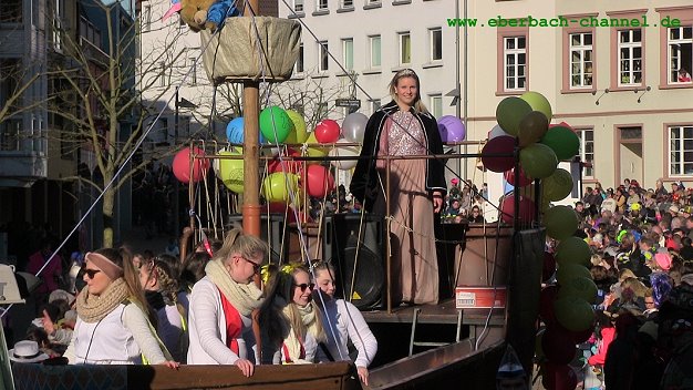 Verstärkt wurden die närrischen Eberbacher Akteure auch wieder von vielen Teilnehmern aus dem Umland. Die Hirschhorner Ritter waren stark vertreten, auch aus Neckargemünd, Neckargerach, Igelsbach, Heddesbach, dem Sensbachtal , Hesselbach und aus Waldbrunn mischten Gruppen kräftig mit.