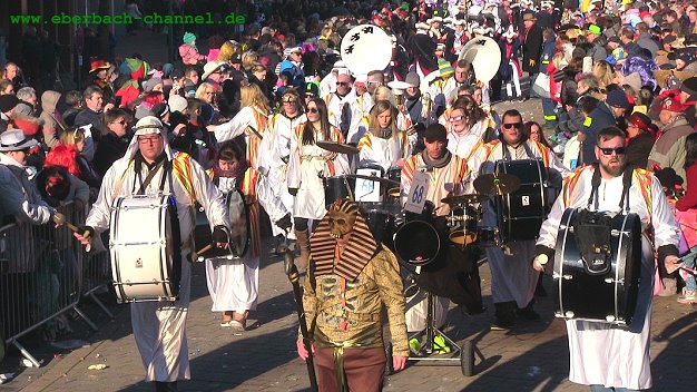 Verstärkt wurden die närrischen Eberbacher Akteure auch wieder von vielen Teilnehmern aus dem Umland. Die Hirschhorner Ritter waren stark vertreten, auch aus Neckargemünd, Neckargerach, Igelsbach, Heddesbach, dem Sensbachtal , Hesselbach und aus Waldbrunn mischten Gruppen kräftig mit.