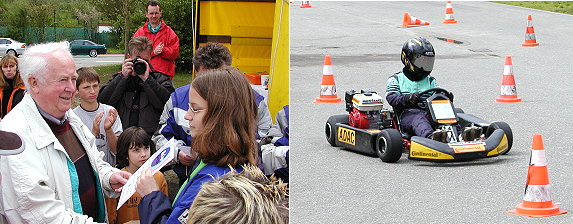 81 Starter beim Jugend-Kart-Slalom in der Au Stellvertretender Bürgermeister Hermann Bussemer bei der Siegerehrung Klasse K3 und ein Starter in der Klasse K4. (Fotos:Claussen)(jc) (py) Zufriedene Gesichter rund um den Slalomleiter, Heinz-Peter Boch, gab es beim 1. Neckar-Odenwald-Jugendkart-Slalom des MSC Eberbach in der Au. In diesem Jahr war es zwar noch kein Meisterschaftslauf, aber die Verantwortlichen sind sich sicher, dass im nächsten Jahr um Punkte gefahren wird und sich die Starterzahl noch erhöht. Auch mit dem Wetter hatte man Glück. Nur die Jüngsten mussten mit Regenreifen fahren, dann konnten die Älteren auf profillosen Slicks an den Start rollen. Ein Trainingslauf und dann zwei Wertungsläufe auf der rund 600 Meter langen Strecke mussten die Entscheidung über Pokale oder Urkunden bringen. Bei den Jüngsten in der Klasse K1 (ab 8 Jahre) siegte Dave-Gordon Kretschmar aus Bad Rappenau vor Daniel Weegmann (Knittlingen) und Robin Kretschmar (Bad Rappenau). Die Eberbacher Piloten schafften folgende Platzierungen: 9. Simon-Theodor Koch, 11. Fabienne Knab, 12. Janick Rothe, 13. Verena Dillmann.