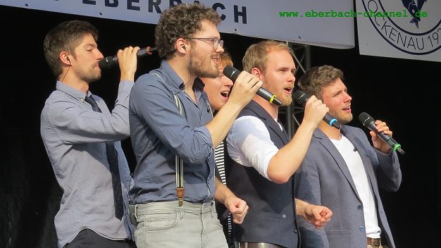 Sonniges 39. Stadtfest in Bildern A-Cappella-Gruppe "Anders" mit dem Ex-Eberbacher Fabian Weithoff (l.) am Sonntagabend auf dem Neuen Markt. (Foto: Hubert Richter)Mehr Bilder (Klicken zum Vergrößern):
