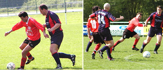 Auswärtsschlappe in Wiesenbach gut verdaut (Fotos:Claussen)(jc) Trotz der überraschenden Niederlage vom vergangenen Wochenende scheint der SV Eberbach nicht vom Bayer-Syndrom befallen zu sein und konnte mit einem überzeugenden 5:1 gegen Altenbach der Meisterschaft wieder einen Schritt näher kommen. Der Torreigen begann in der 17. Minute durch Ismet Kastrati, danach folgte kurz vor der Halbzeit, mit einem Foulelfmeter das 2:0 durch Achim Hable. In der zweiten Hälfte überzeugten die Eberbacher durch ihre Überlegenheit, und so kam es in der 66. und 69. Minute zu weiteren Treffern durch Hable und Florian Beierer. Der Gast schaffte in der 74. Minute nur noch den Ehrentreffer, ehe Gilbert Haraycan den Endstand herstellte.