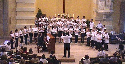 Musik von himmlischer Leichtigkeit Der Unterstufen-Chor unter der Leitung von Dieter Kaiser, am Klavier Eberhard Höhn. (Foto:Richter)(hr) (ra) Die Chöre des Eberbacher Hohenstaufen-Gymnasiums boten am Donnerstag in der sehr gut besuchten Michaelskirche ein erfrischend originelles Programm. Chöre und Instrumentalisten präsentierten sich unter Dieter Kaisers Leitung in Bestform.