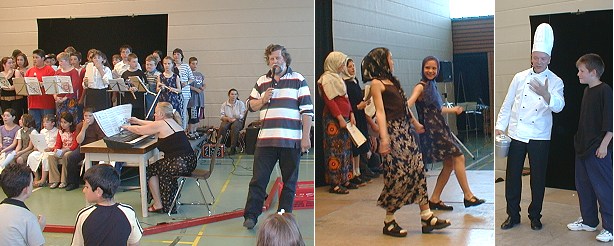 Auch die große Hitze an diesem Tag, die eher für einen Freibadbesuch sprach, konnte die Schüler nicht davon abhalten, das Gelernte auszustellen oder vorzuführen. Schwarzlichttheater, Chor und Flötengruppe, Tanzprojekt und Märchentheater zeigten auf der Bühne, was sie in drei Tagen gelernt hatten. Zwei richtige Künstler, nämlich der Pantomime Mario Valdez aus Peru und der deutsche Vizemeister im Zaubern für Kinder - Martin Mathias mit Sohn und Frau - rundeten das Programm ab. Insbesondere die Darbietungen des Zauberers, der übrigens auch Lehrer ist, waren ein echter Höhepunkt und begeisterten die großen und kleinen "Kinder". Beide Künstler waren übrigens voll des Lobes für ihre Zuschauer. Selten hätten sie so aufmerksame und konzentrierte Mitspieler gehabt.