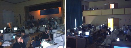 Netzwerkparty in Rockenau Lan-Party in der Rockenauer Festhalle. (Fotos:Friedrich)(lf) Zum mittlerweile neunten Mal trafen sich an diesem Wochenende rund 60 computer- und vor allem spielebegeisterte "Freaks" aus der näheren und auch weiteren Umgebung in der Rockenauer Festhalle zu einer Netzwerkparty. Diese gut organisierte Veranstaltung begann am Freitag abend und dauerte bis heute mittag. Gezockt wird so ziemlich alles, was sich übers Netzwerk spielen läßt. Damit die Teilnehmer nicht irgendwann kraftlos von ihrem Stuhl kippen, gibt es seitens der Veranstalter "networksession.de" auch Verpflegung in Form von Pizza, heißen Würsten und Brötchen. Aber dennoch werden viele, die hier am Start waren, erst einmal ein wenig Schlaf nachholen müssen.